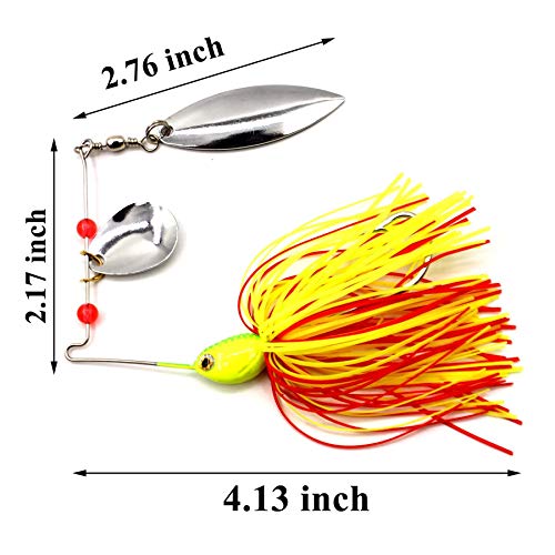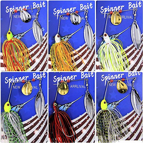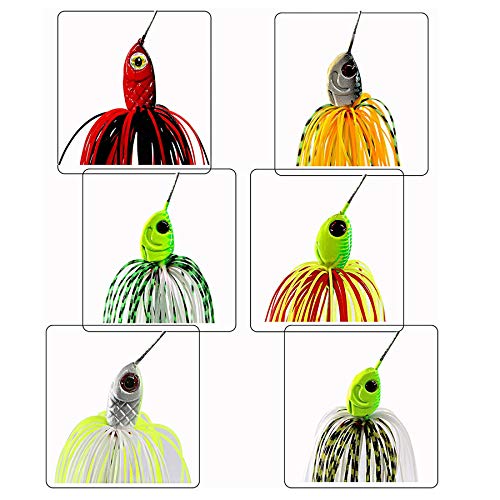 Specification: Shaddock Lot de 6 leurres de pêche durs Spinner Leurres de couleur mélangée Cuillère Spinnerbait Jupe Jig Leurres de…