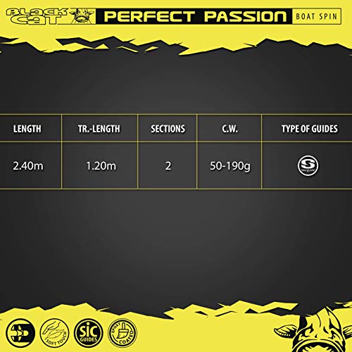 Specification: Black Cat Canne à pêche de qualité supérieure Perfect Passion Boat Spin – 50-190 g – Noir/Jaune – 2,40 m