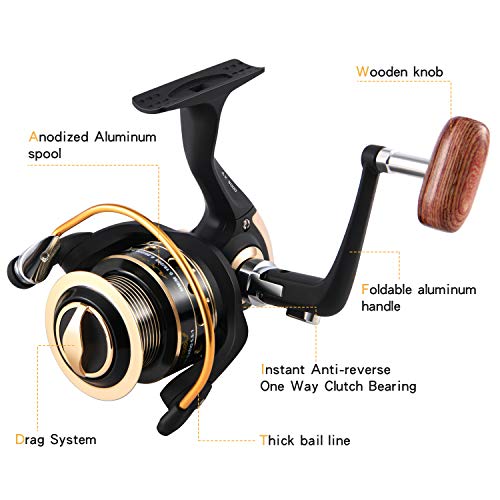 Moulinet de pêche métallique de 5.5:1 avec blocage multifonction, de manivelle métallique pliable, de frein arrière ajustable et de cliquet de frein. Capacité : (mm/m) 0.18/285 0.20/230 0.25/150.