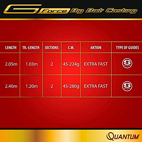 Specification: Quantum G-Force Big Bait Casting poignée de déclenchement pêche Canne à Lancer de qualité, Noir/Beige, 2,05 m