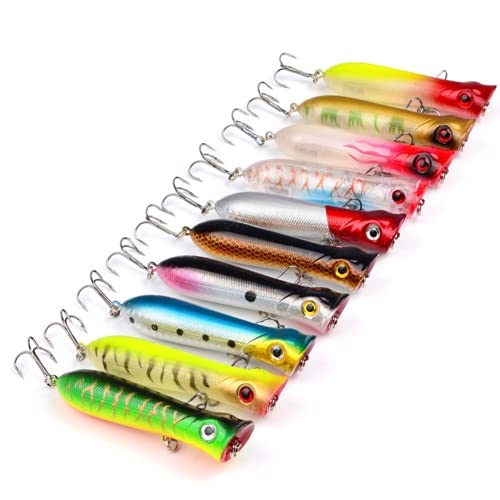 Specification: 10 pièces en plastique dur Popper leurres de pêche basse appâts s’attaquer 11g 8.5cm 6 crochetDurable et pratique