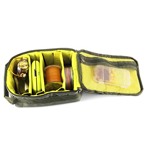 Le sac de bobine de pêche dispose de 3 partitions internes réglables, du sac de rangement en maille à fermeture éclair transparent interne, une doublure jaune haute visible pour votre expérience de narration