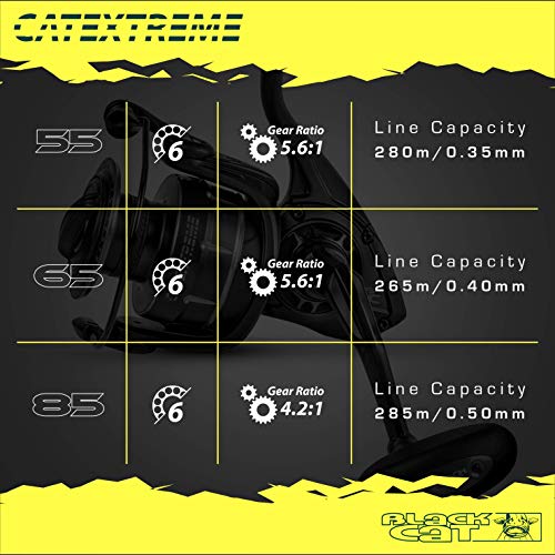 Specification: Black Cat Moulinet de pêche Brutal Puissant Catextreme – Force de freinage : 14 kg – 6 roulements à Billes – Noir/Jaune